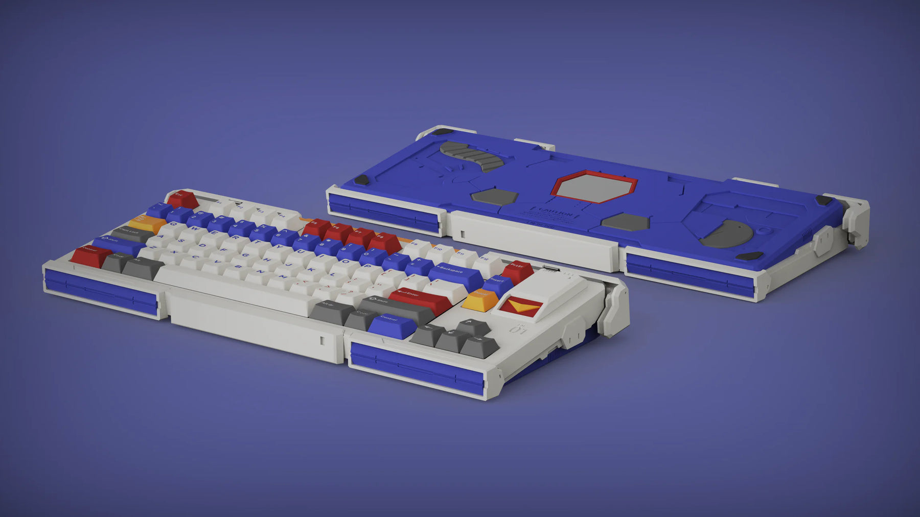 To showcase the layered nature of the mecha, we used exoskeleton components, which not only creates a more three-dimensional feel but also allows for greater freedom in color and material mixing.