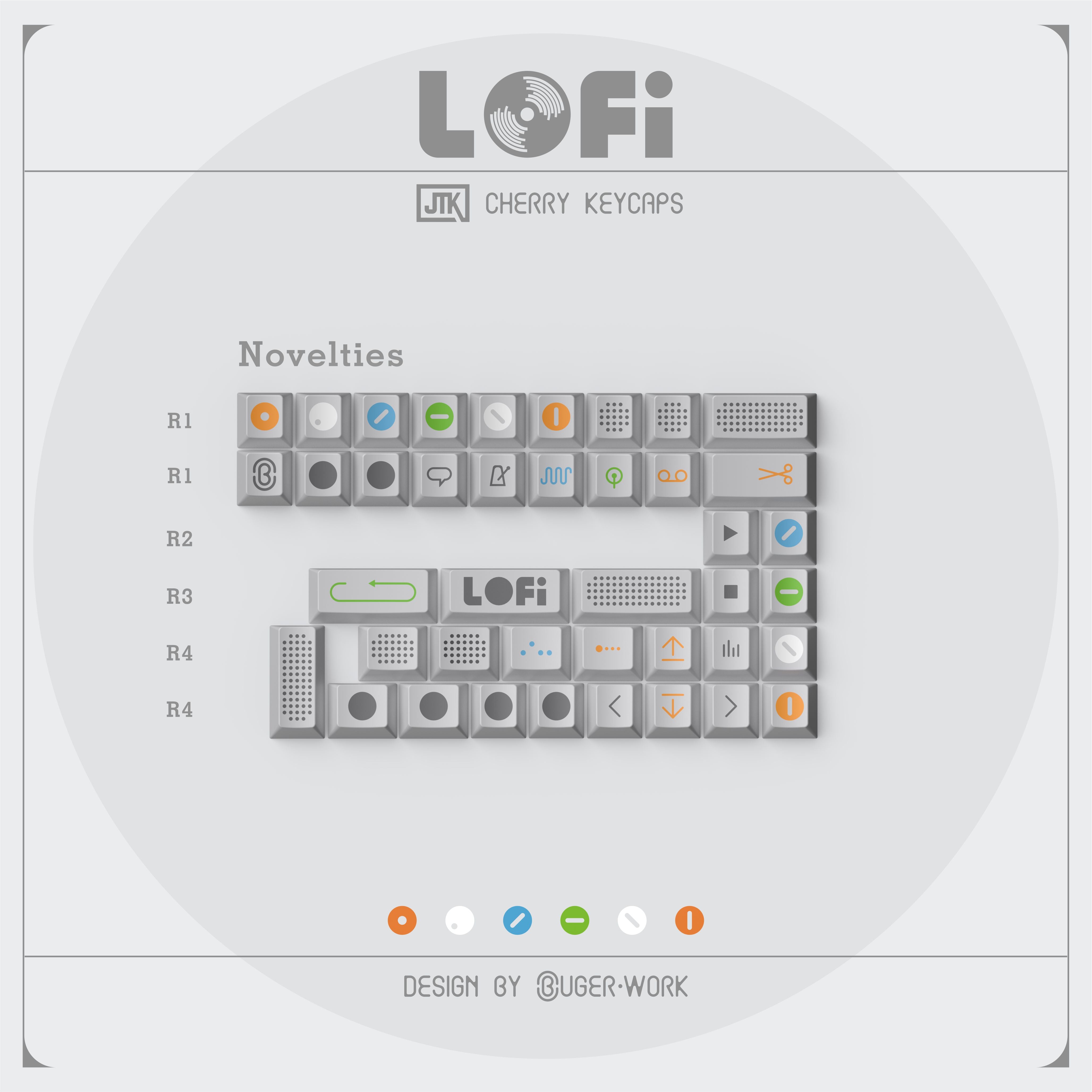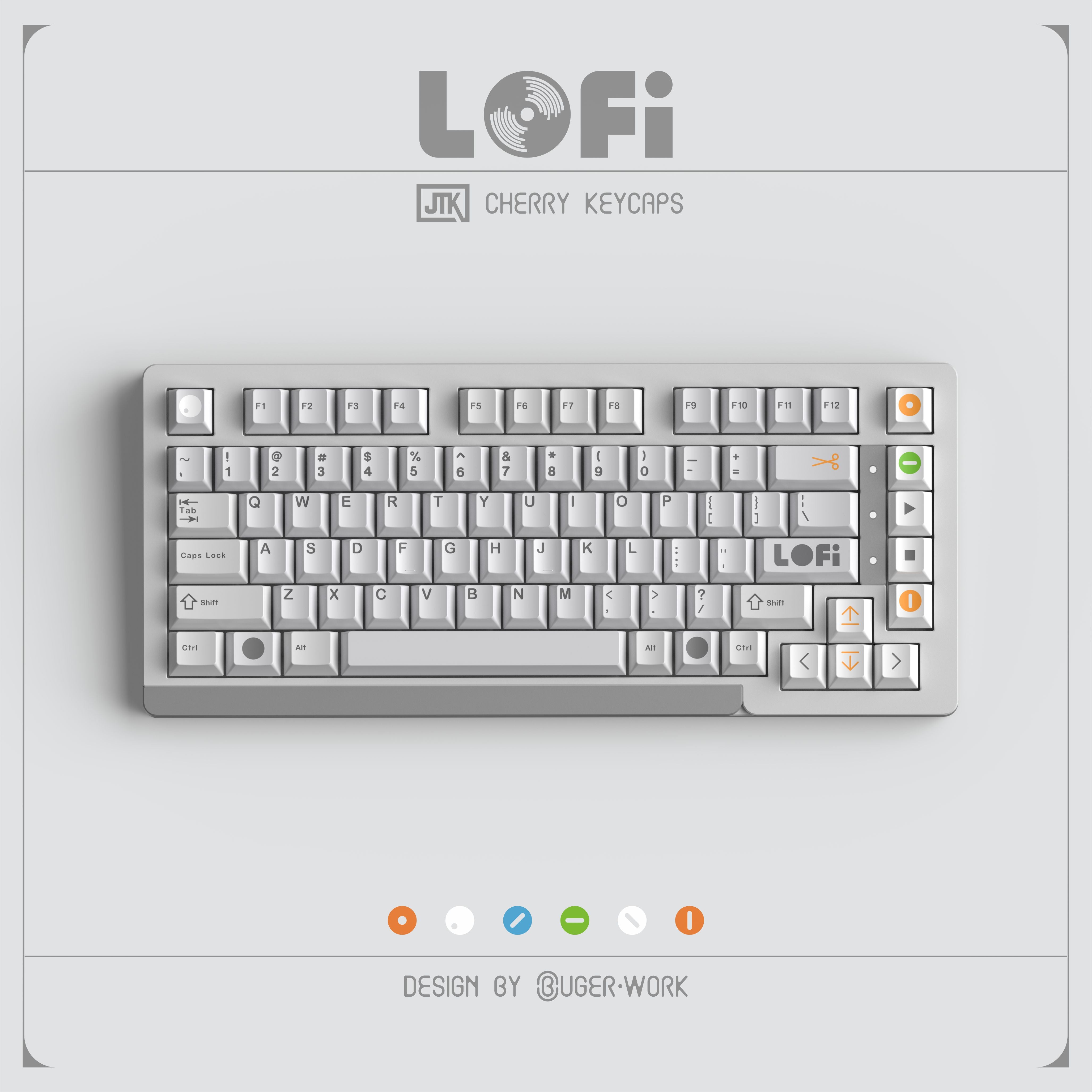 JTK LOFI Light cool gray keycaps with design elements inspired by the OP-1 synthesizer. Overall, the design is calm and clean. Utilizing JTK doubleshot process, the...