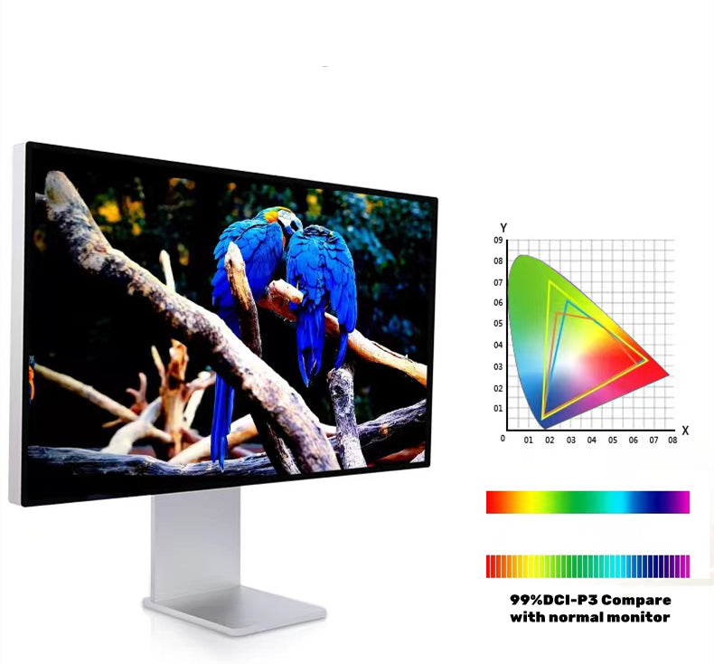 27" 5K 60Hz IPS DisplayG27X is the flagship professional monitor from Kuycon with magnificent color performance, 600nit Brightness and 218ppi detail expression. The G27X is a cost-effective alternative of Apple Studio Displays and LG 5K UltraFine Displays.