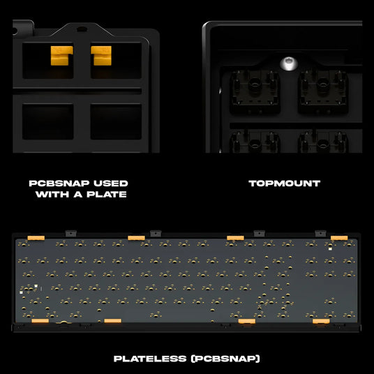 - Top-mount plate can be used with PCBsnap, but does not offer optimal acoustic performance due to the possibility of slight contact between top-mount tabs and the Case.
