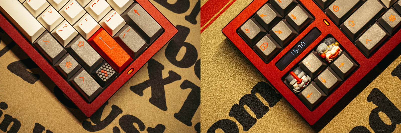 You can quickly switch to match your desire. The completely horizontally symmetrical design of the mounting mechanism for the bottom weight to the lower case, as well as the split PCB design for the different areas, allow for a more harmonious appearance and a better typing experience.