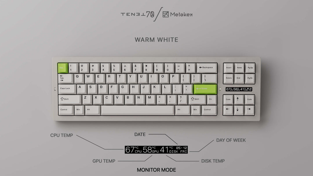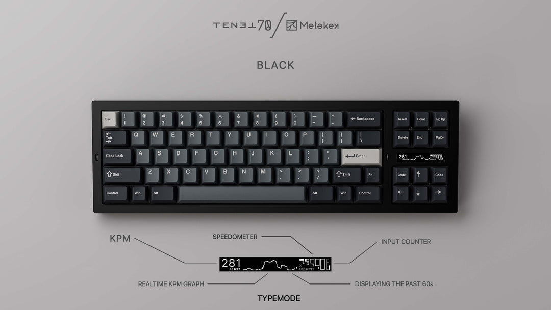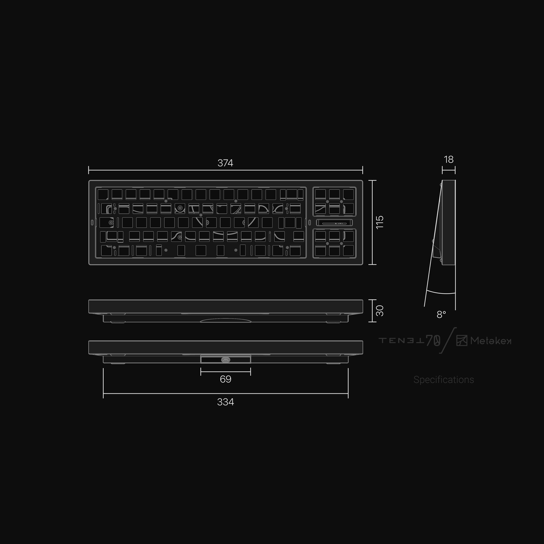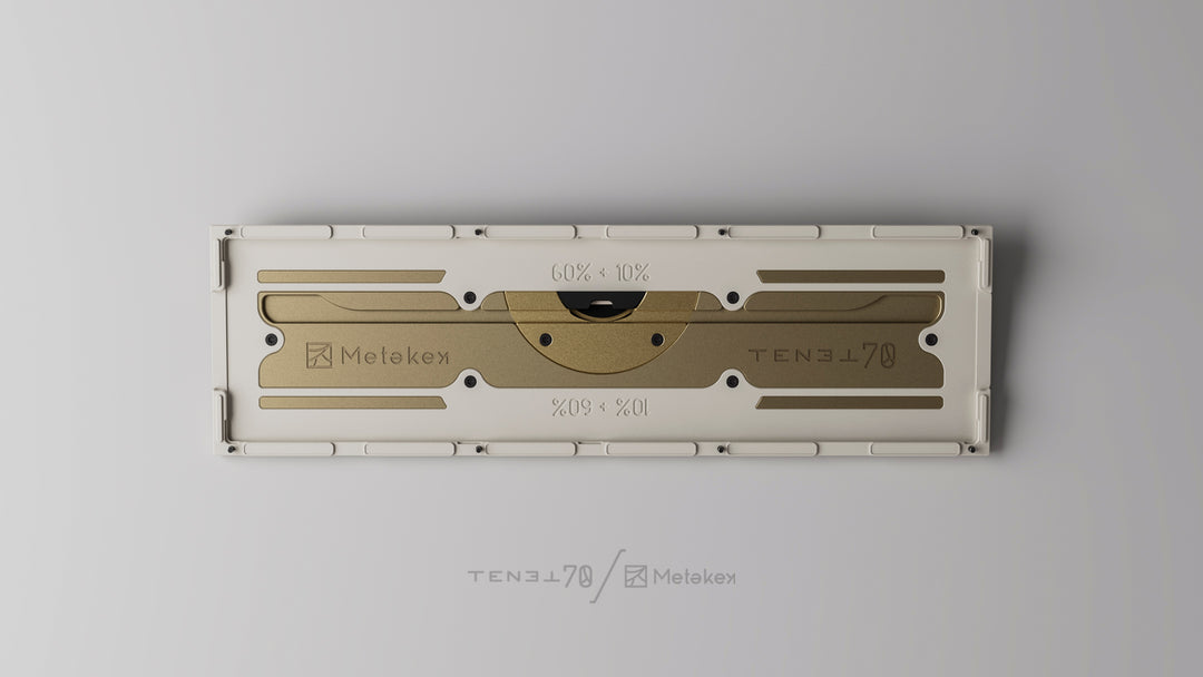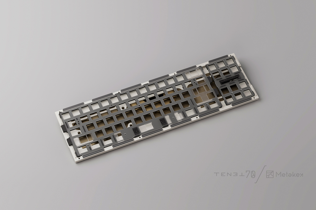 As everyone knows, the asymmetry between the left and right zones of the 80% layout can make it difficult to achieve a balanced feel with the keyboard, and many designs use a single PCB with spacing in the PCB between the main and directional key areas to divide the plate between the two areas where possible. Other keyboards adopt a similar idea, but fully dividing the inner structure to provide a better feel. The separate PCBs and plates for the different sections is key to the TENET70, optimizing feel and sound uniformity while also giving the keyboard the ability to switch between regular and southpaw layouts.