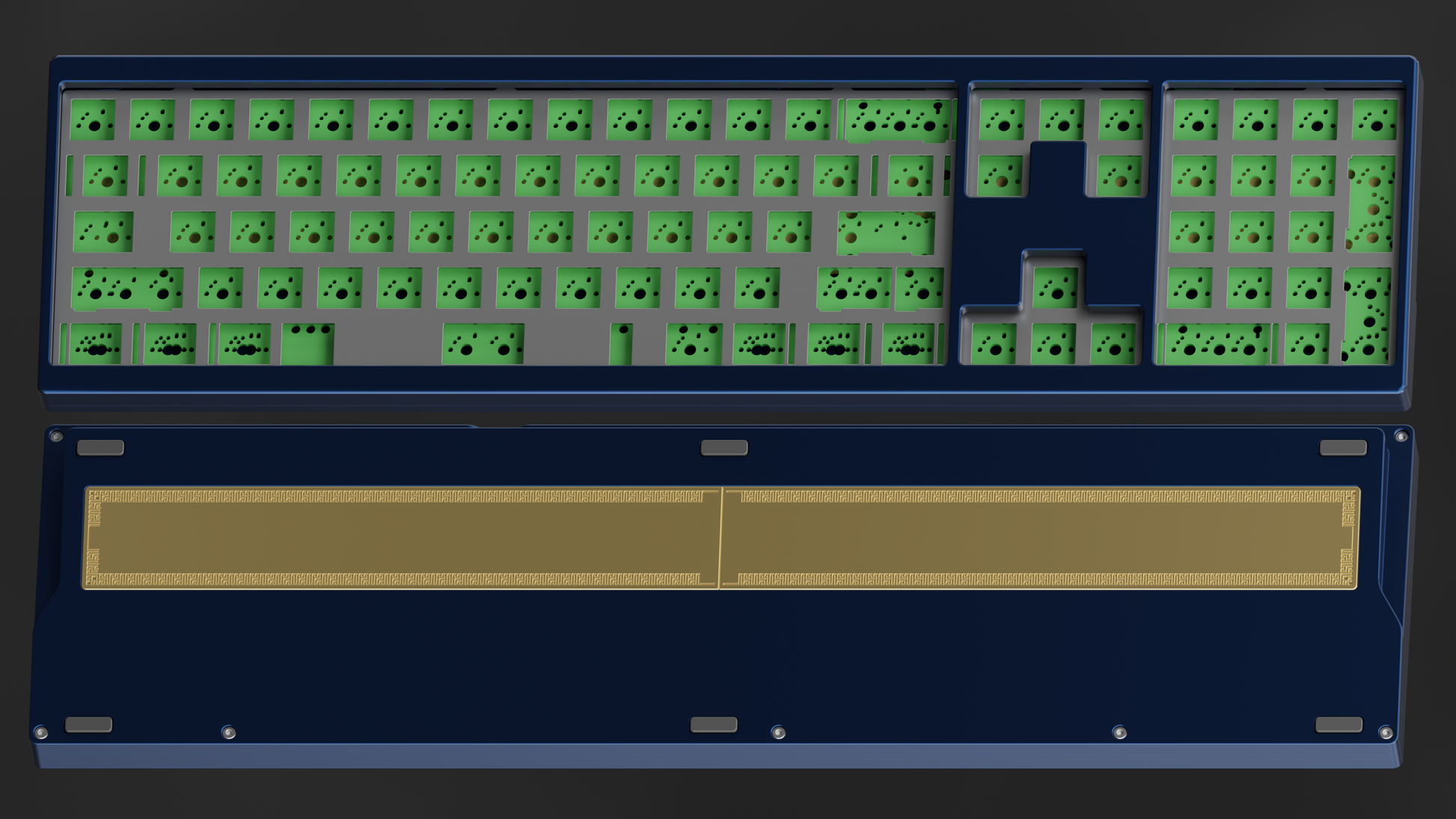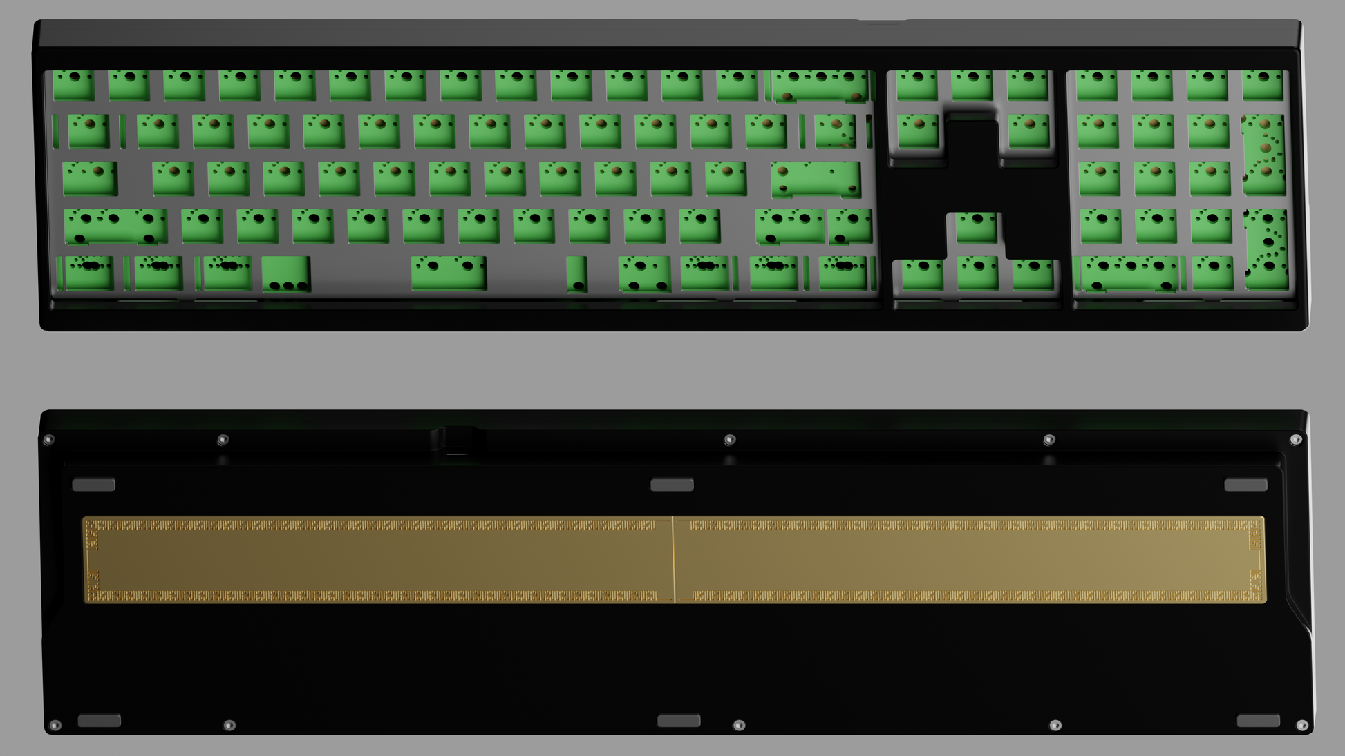 PCB layout support: 10U spacebar, Split backspace, ISO enter, 1.25U left shift and 1.75U right shift, 2U and 1U on numpad.
