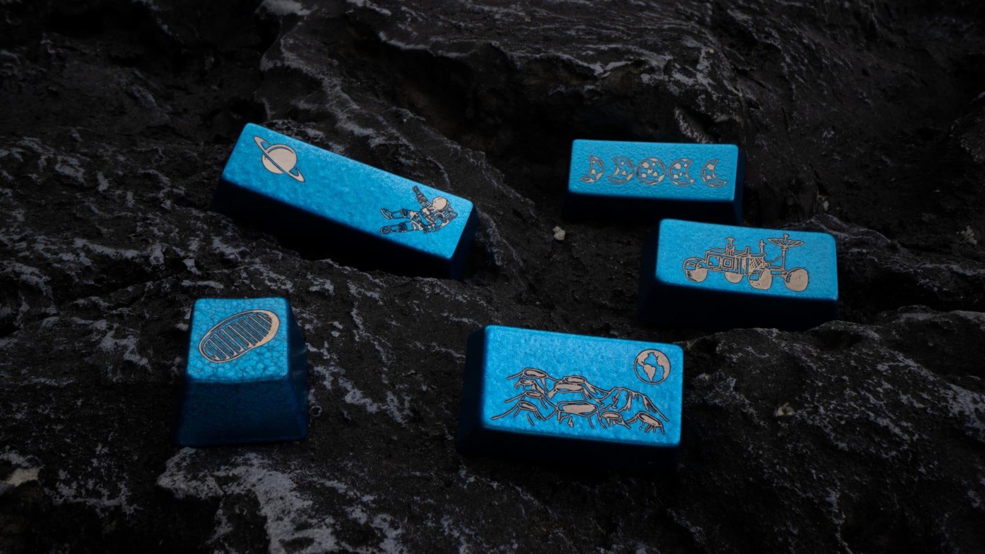Metal keycaps of Moon Landing Series feature a specially crafted textured surface that replicates the feel of the moon's surface, allowing you to touch the moon right at your fingertips.