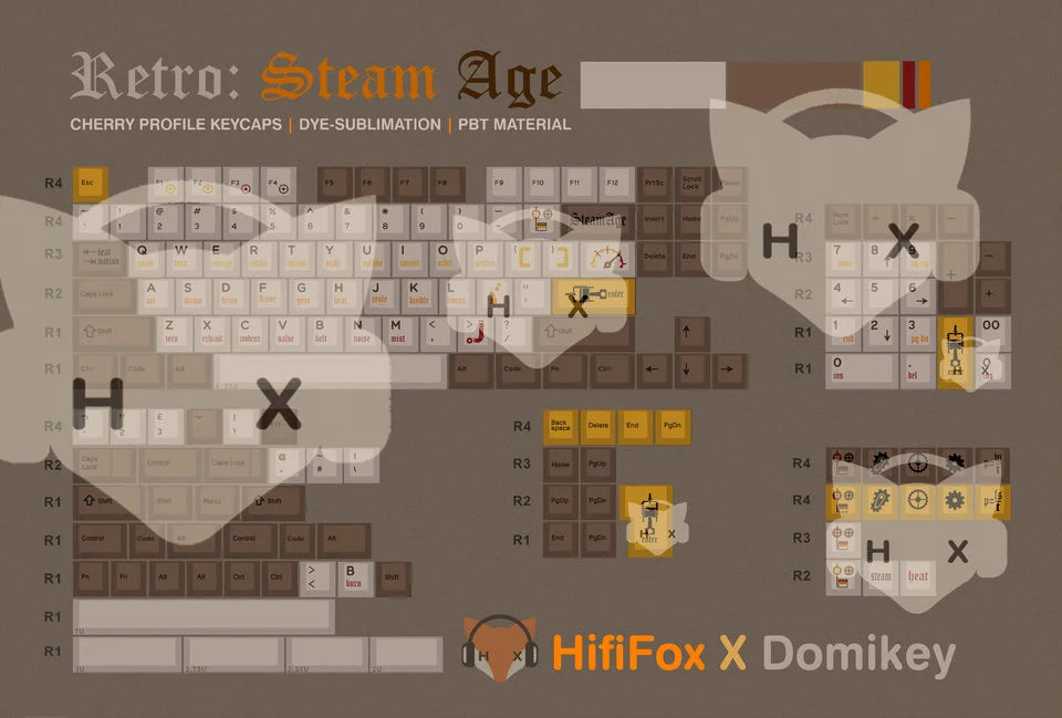 [In-stock] Retro: Steam Age Cherry Profile Keycaps