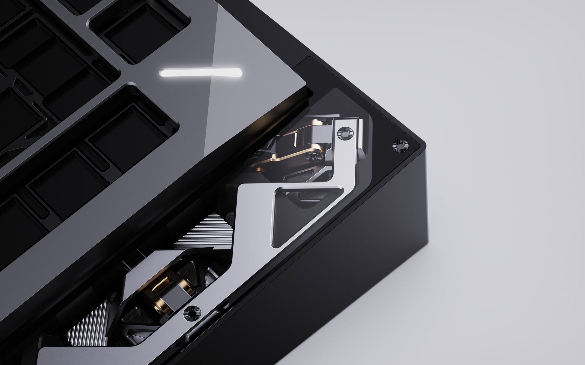 The inner structure is designed separately, utilizing 4 large permanent magnets for upward thrust. Nooir's objective is not to create a magnetic suspension gasket but to achieve a visual effect of the entire keyboard being suspended.
