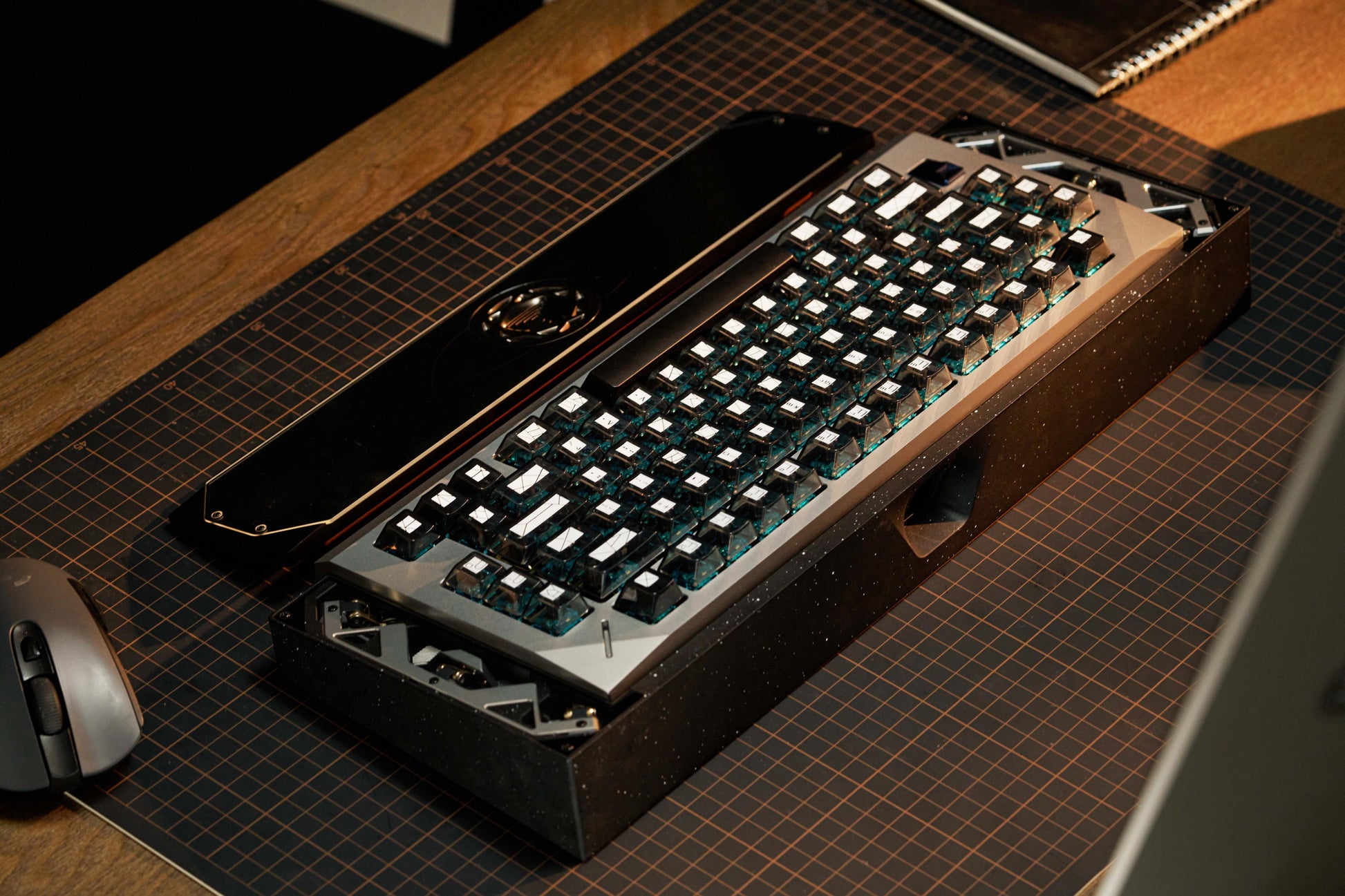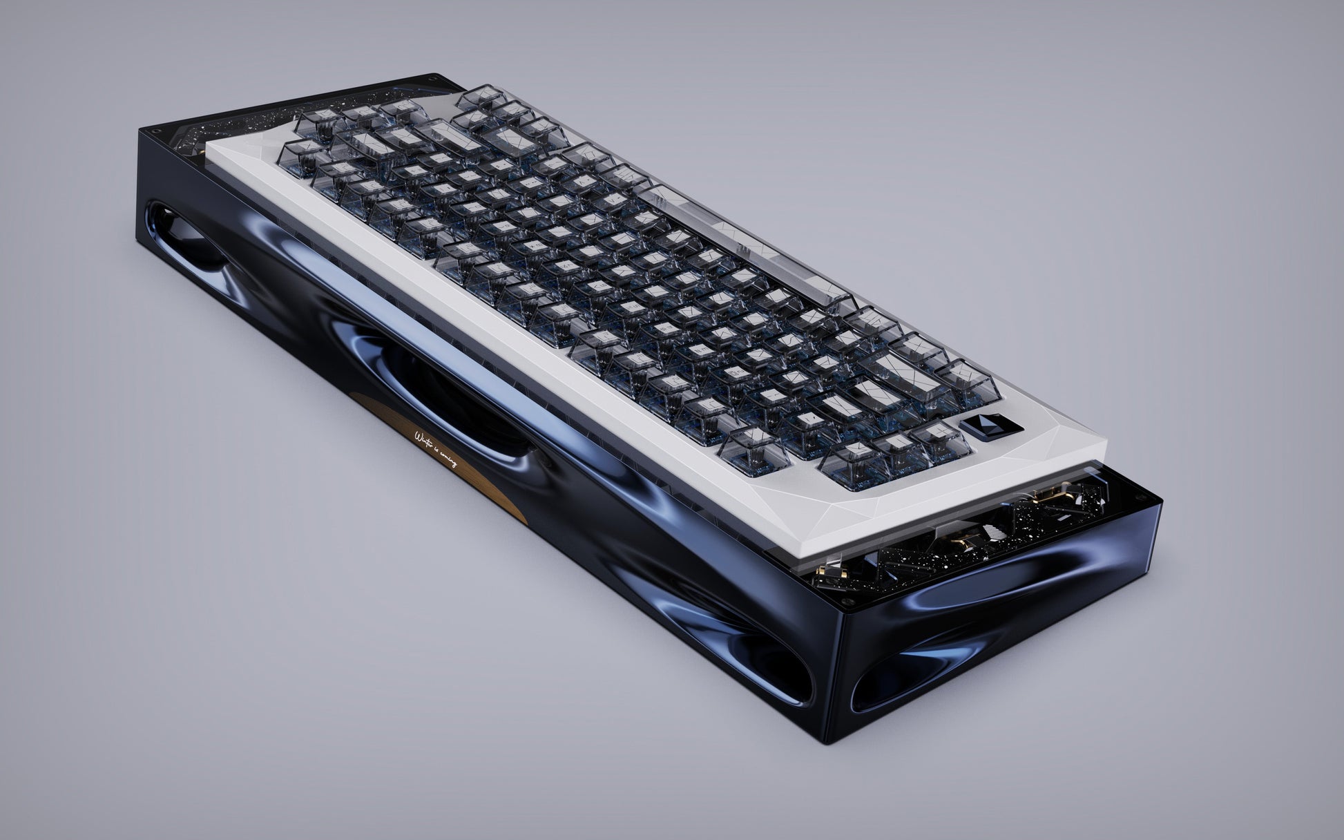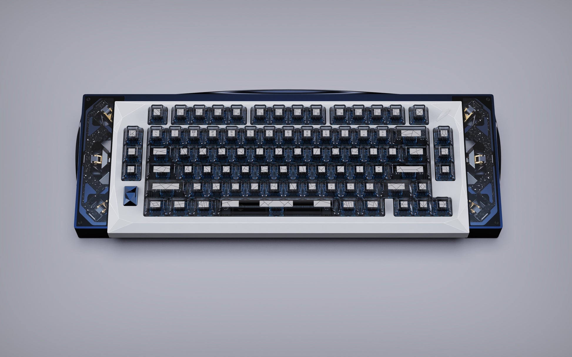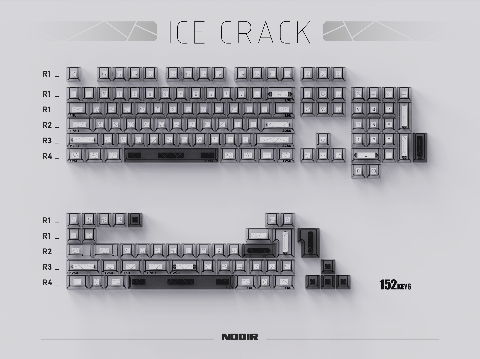 NOOIR N1 exclusive transparent keycaps "Ice Crack" - Made of ABS material with an in-mold foil process, creating a faint blue halo under light.